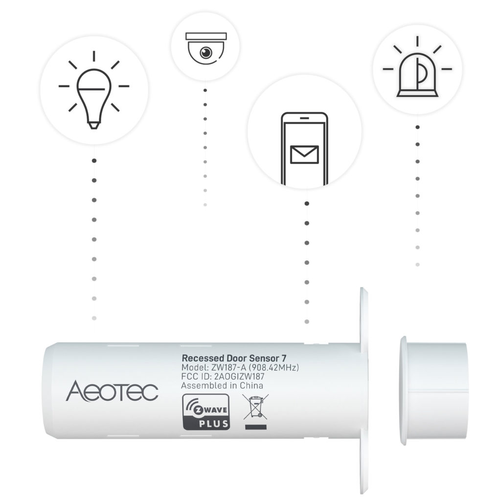 Recessed Door Sensor 7 is your first line of defence against an intruder. The instant a door or window opens, your automation system can alert you and activate compatible sirens, cameras, and other security devices.