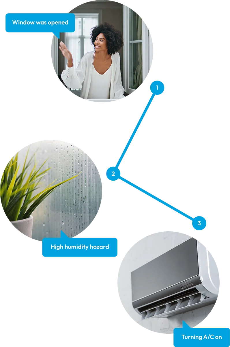 With its built-in temperature and humidity monitoring, the sensor also detects high humidity levels and warns of potential mold risks. It continuously tracks the dew point and notifies you when it’s time to air out your home again. And because it precisely monitors the actual opening and closing of your windows, you’ll always know if ventilation really took place—whether the window is open or the AC is running.